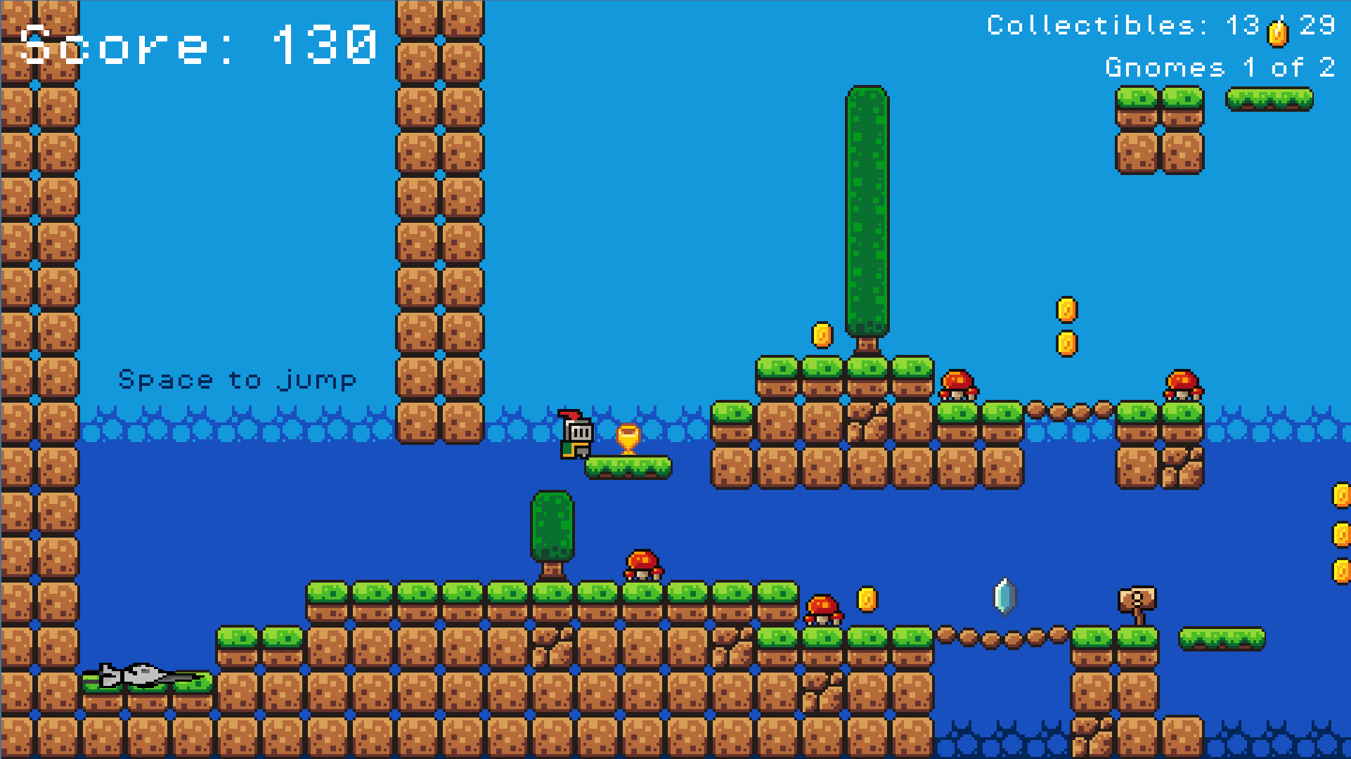 Grab all collectibles and STOMP all gnomes to finish the level!